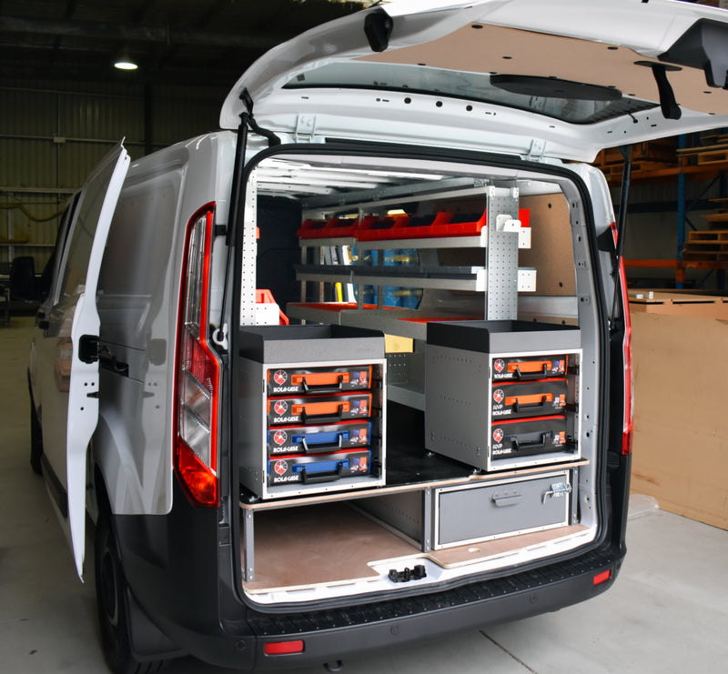 If you have come into ownership of a Ford Transit custom van and looking to create a more efficient business, then RolaCase and Rolashelf can provide all the help you need in one place.